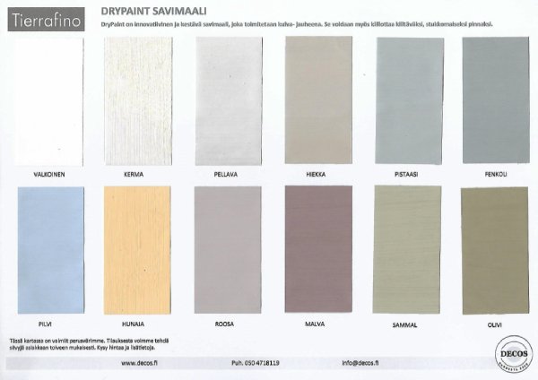 Värikartta, jossa aidolla savimaalilla tehdyt värimallit. Kartan koko A4.